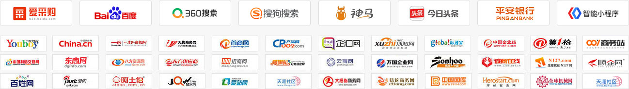 一比多 八方資源網(wǎng) K2商務(wù)網(wǎng) 首商網(wǎng) 無憂商務(wù)網(wǎng) 金屬期貨 蜘蛛客 第一槍 淘金地 萬國(guó)企業(yè)網(wǎng) 誠(chéng)商在線 搜好貨網(wǎng) 供求信息網(wǎng) 如意寶建站 如意問答 最新商機(jī) 中國(guó)供應(yīng)商 卓采匯 搜貨寶 100推 企業(yè)聯(lián)合網(wǎng) 領(lǐng)商網(wǎng)